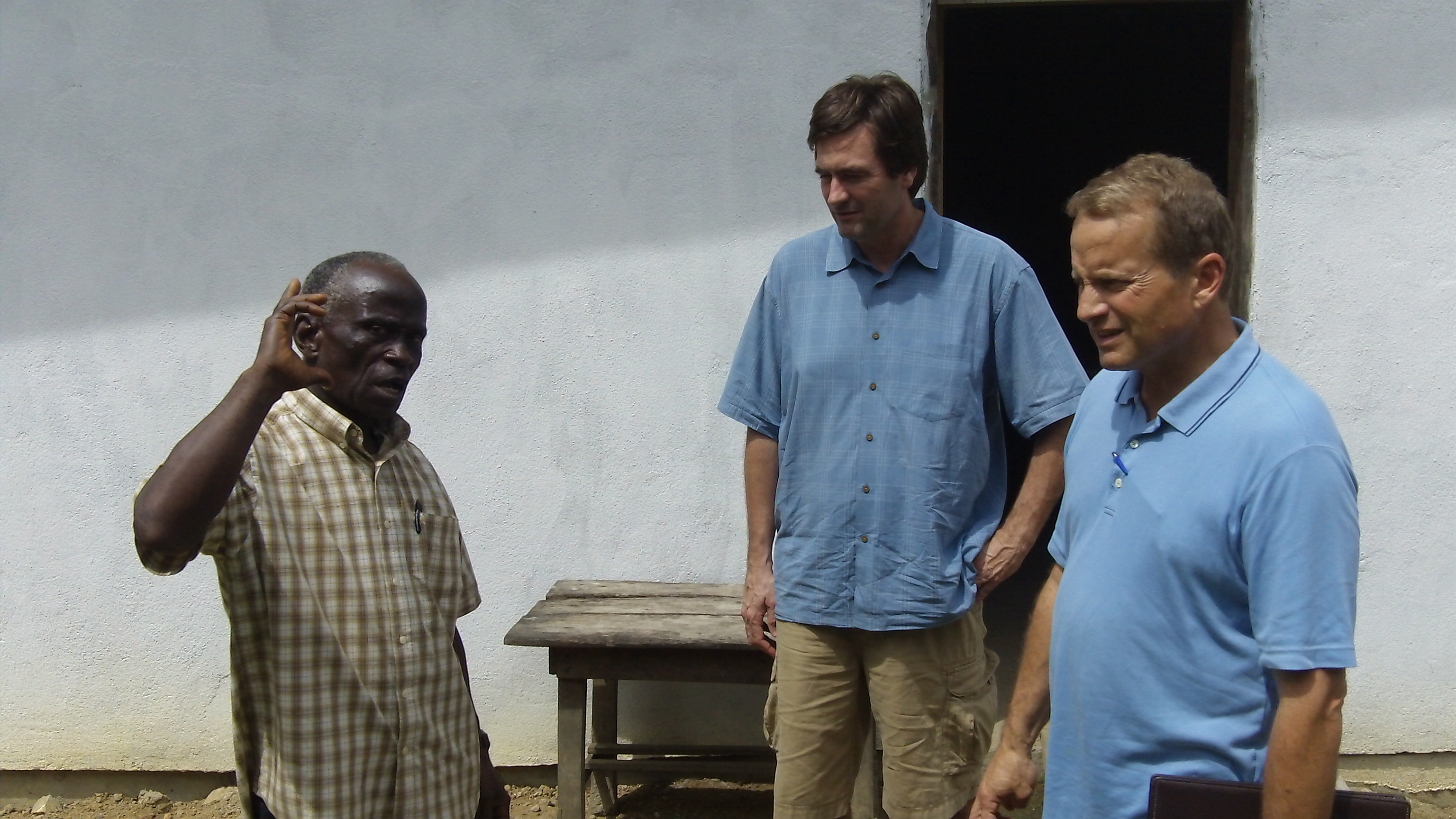 Eddie Williams showing Gordon and David the medical clinic they built and a farm that will sustain church planting