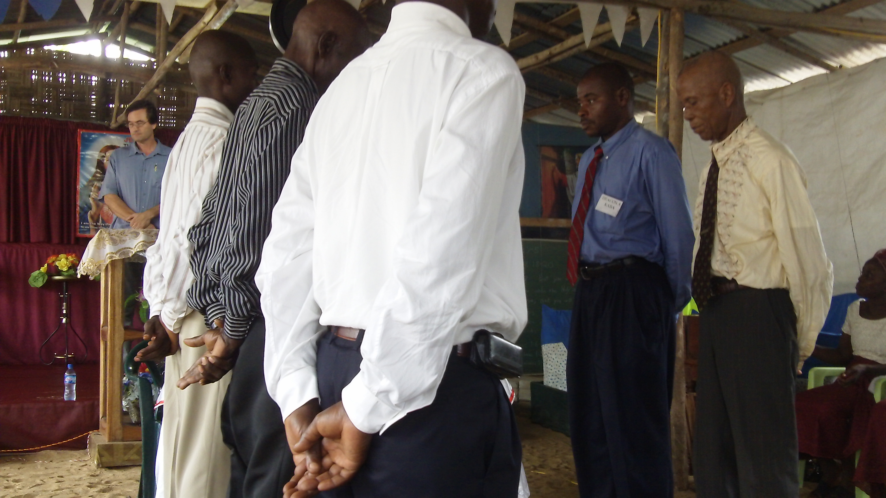 Gordon with Liberian Leaders...Communion in Worship Service